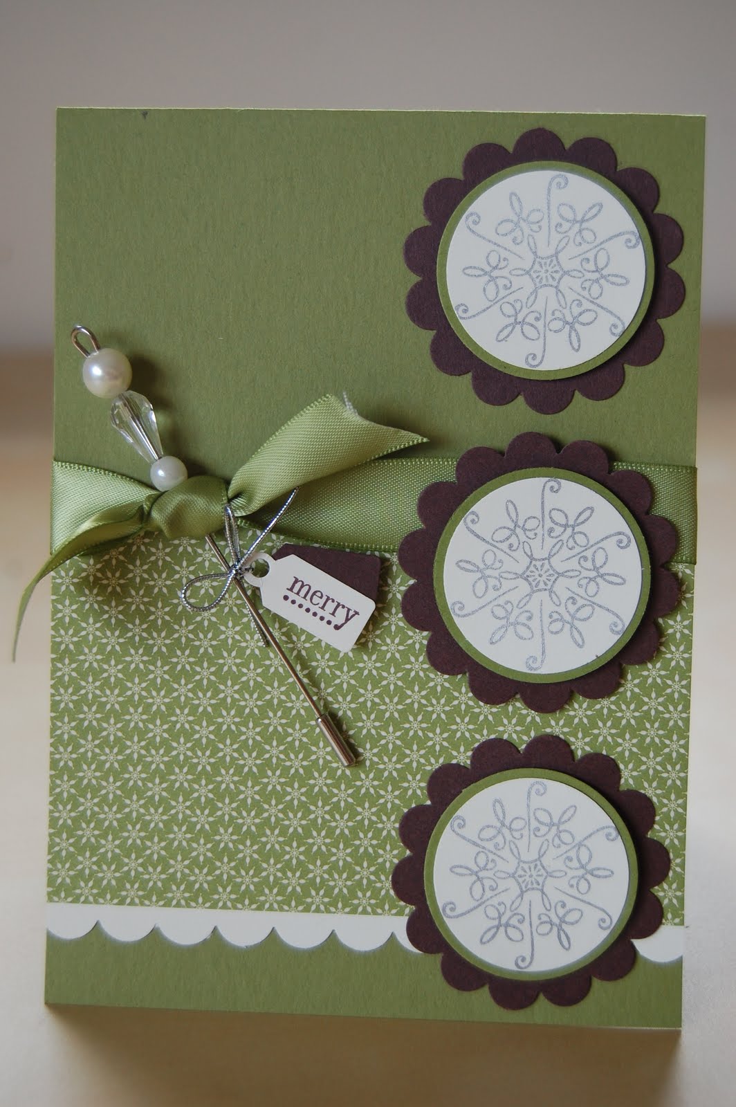 We also used embellishments from the Pretties Kit and Old Olive 5/8″ Satin Ribbon.  We had a lovely afternoon crafting and it is surprising where the time goes!