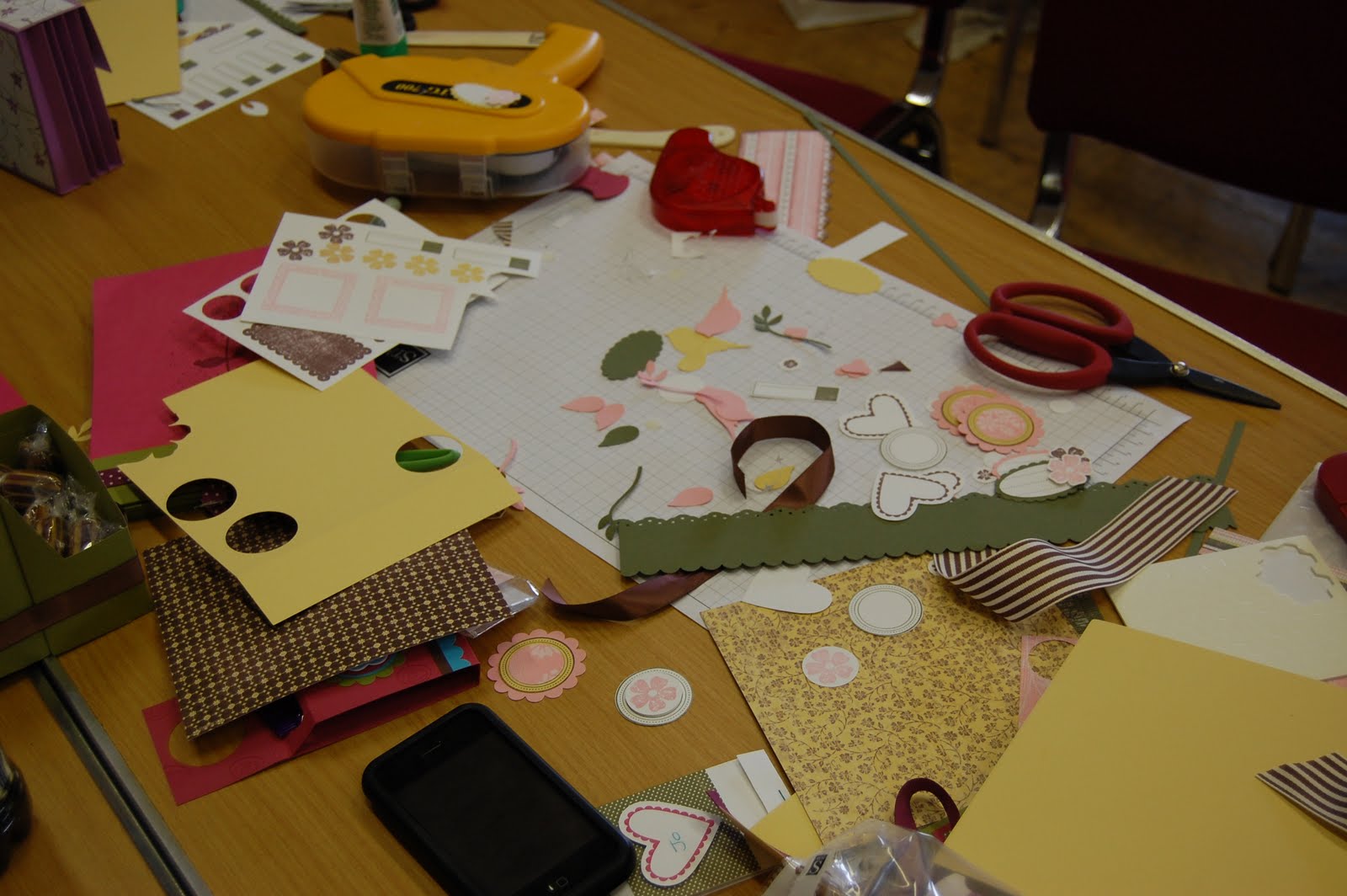 Our stamping and punches tables were busy, busy, busy and everyone was getting engrossed with their books, creating their own embellishments and designing their pages