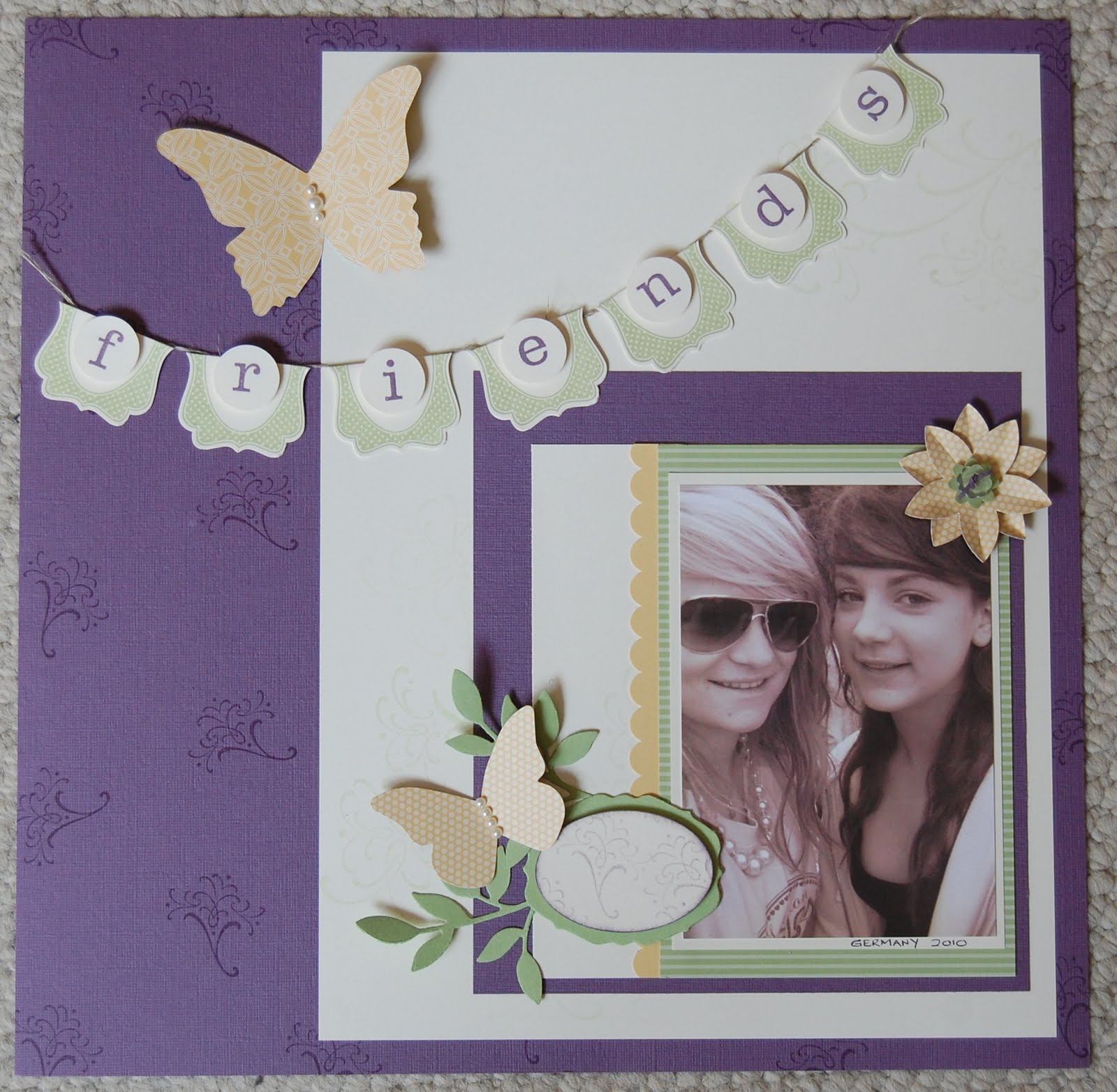 The first layout was very soft and subtle, using colours from the “Subtles” family. To save our cardstock we gutted the main Perfect Plum 12×12 sheet behind the Very Vanilla layer, by “gutting” this means cutting out a section that is going to be hidden by another layer. We then used the “gutted” piece on the layout over the large Vanilla, waste not want not!!