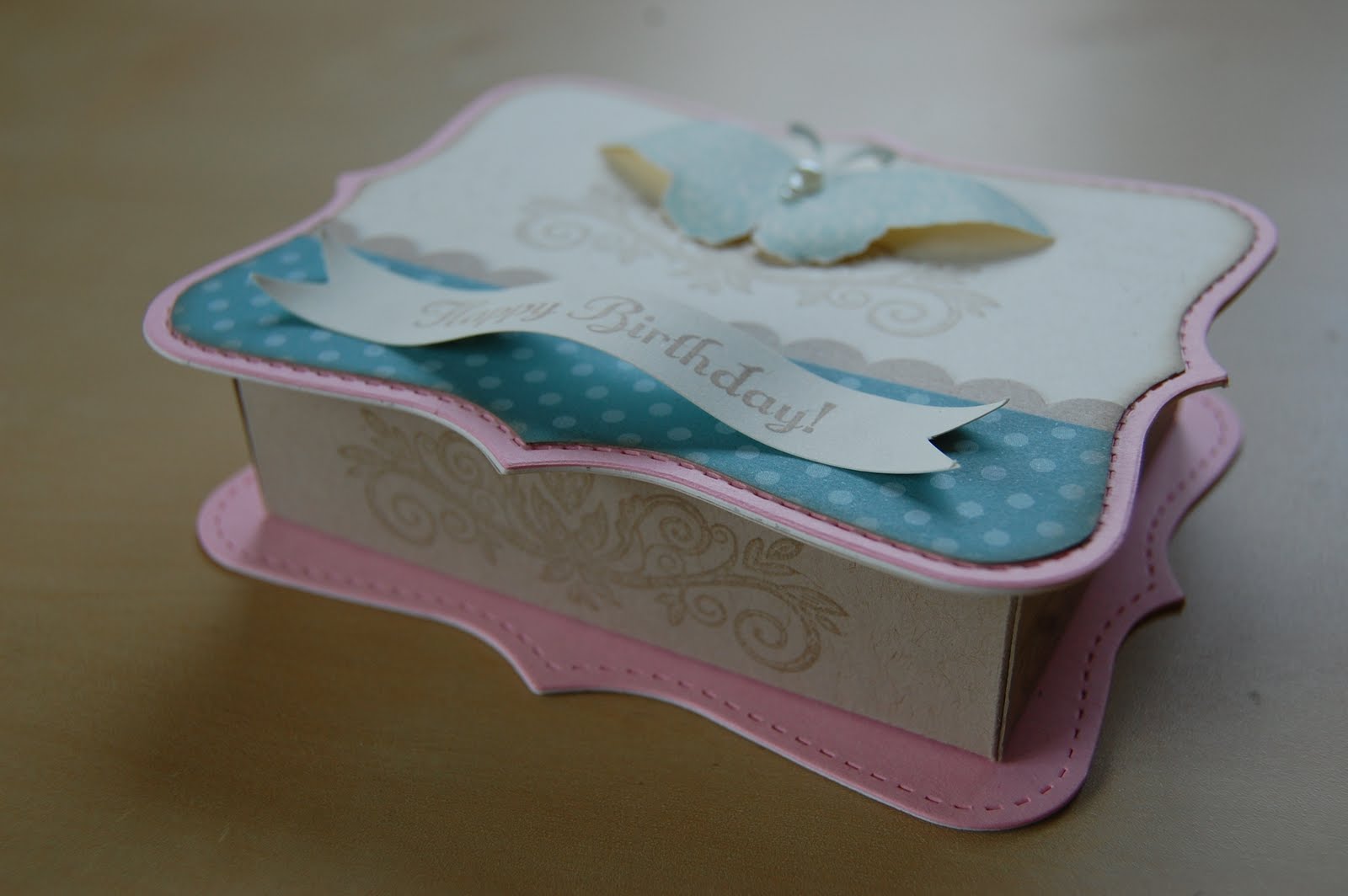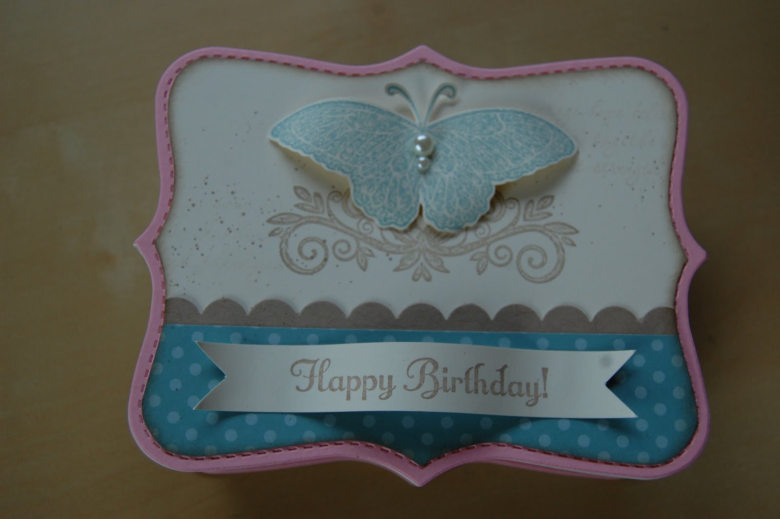 This card design is taken from the Mini Catalogue, so pretty don’t you think? We used one of the flower stamps from the “Tiny Tags” stamp set with Whisper White Kraft Ink in the corners to add some delicate detail.