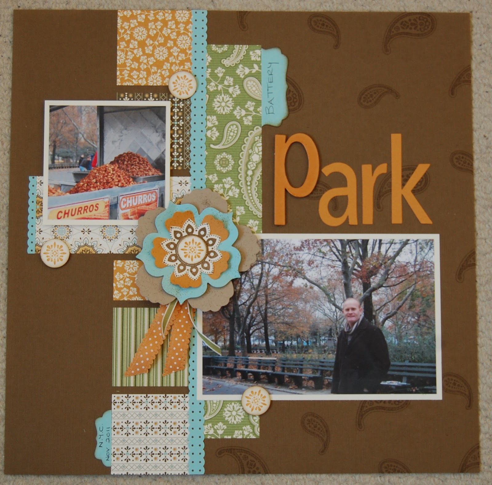 Another New York layout, again using Spiced Paisley stamps and the Spice Cake papers. I love how these papers have a mixture of colours and patterns that are both suited to masculine and feminine projects.
