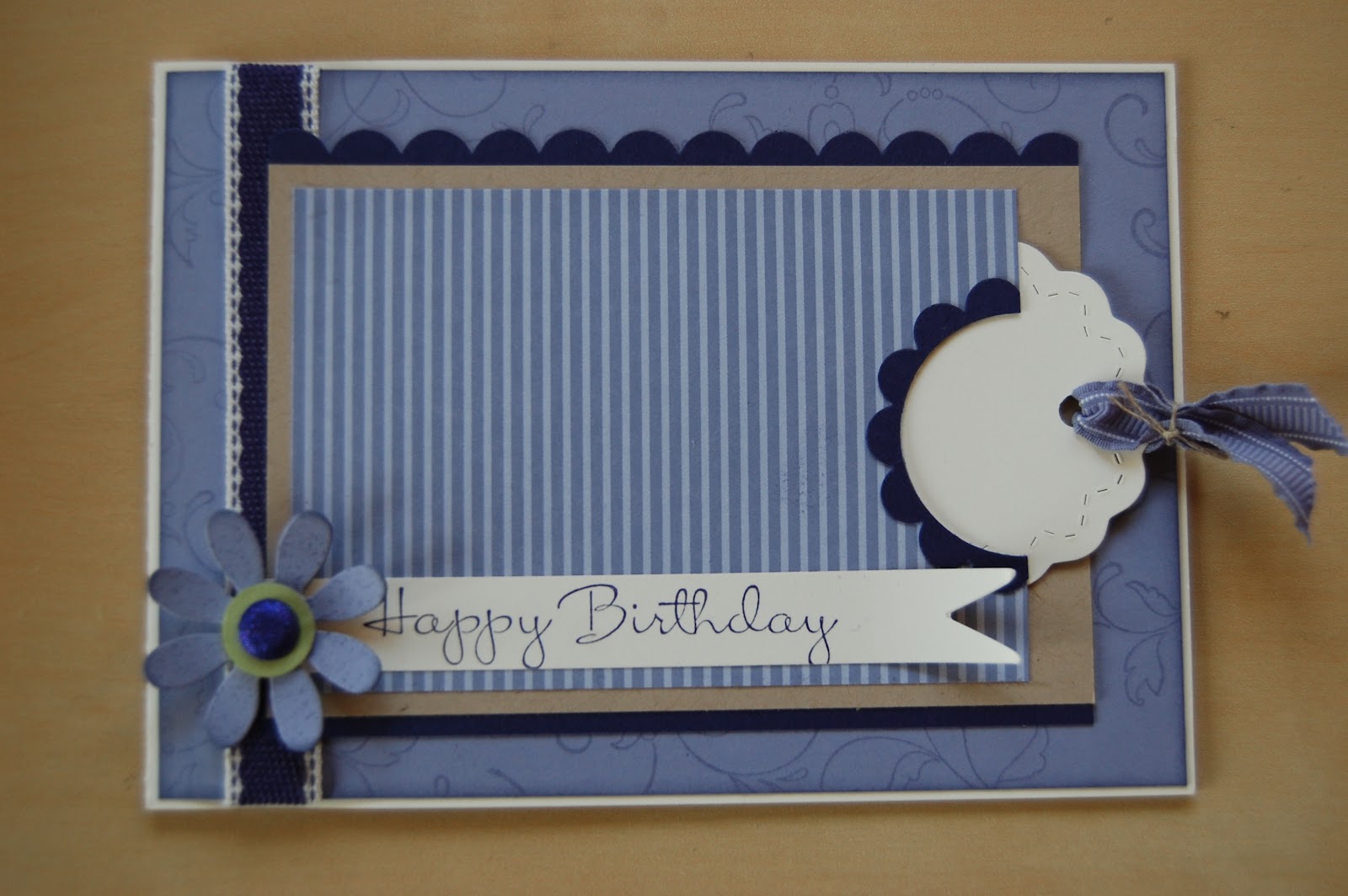 The ribbons also co-ordinate with the card, and I used Wisteria Wonder Ruffled and Concorde Crush Stitched Poly on this one. We stamped more images from “Creative Elements” onto the bookmark. The greeting is from a Hostess set called “Happiest Birthday Wishes”. The stripy paper is from the In Colour stack, you get a whole pad of 40 sheets of double sided patterned paper for an amazing £19.50, it just lasts and lasts and has so many uses.