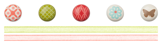 During July, for each £45 order you place you can earn yourself this gorgeous Ribbon and Brad pack worth a whopping £15.95 for FREE. Each little package contains a tub of brads holding 30 delicious brads, 6 of each design and also two spools of Organza Ribbon, one in Lucky Limeade, the other Calypso Coral with 10 yards on each spool, it is so pretty.