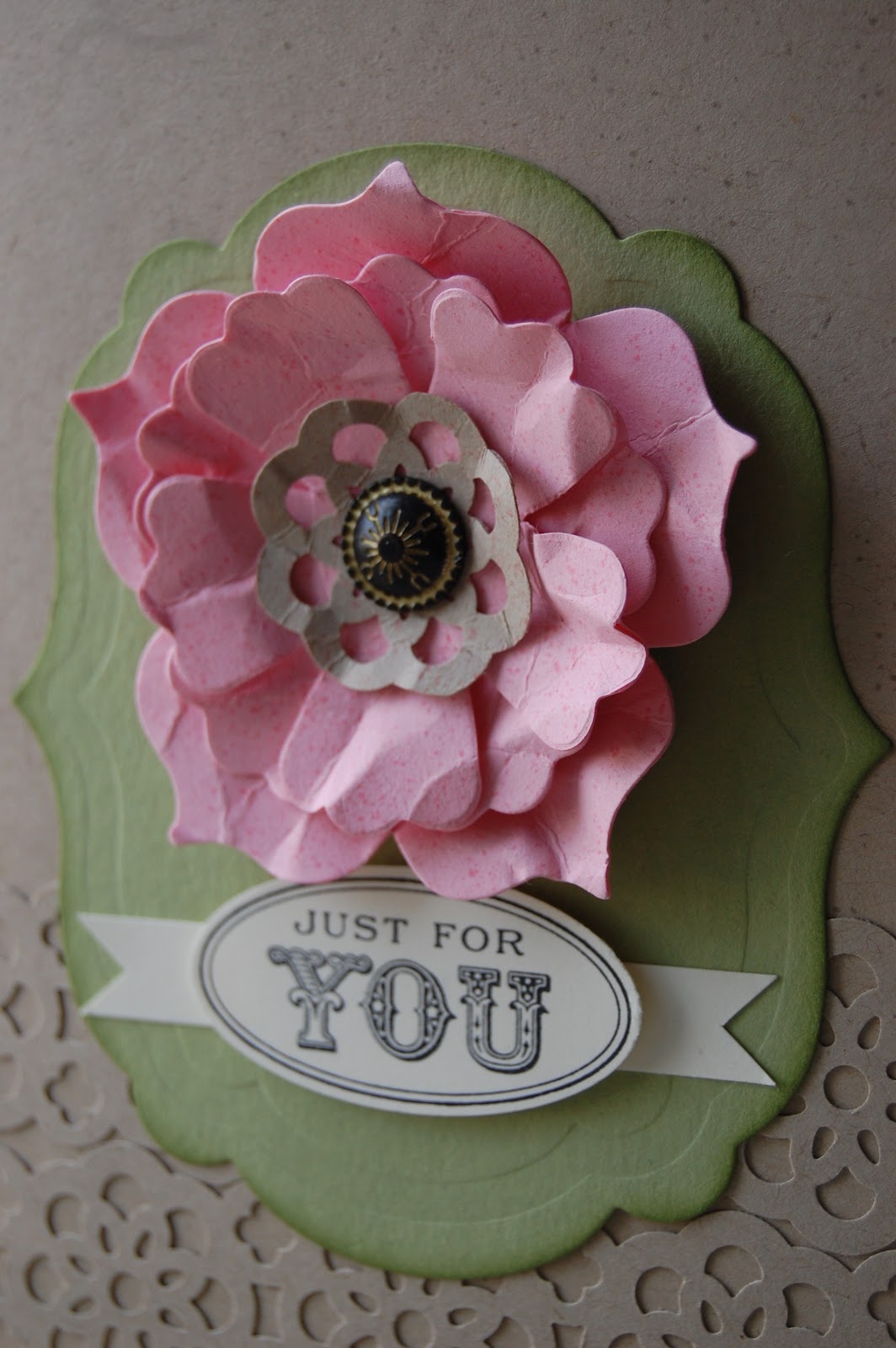 We used the Lace Ribbon Border Punch to decorate the bottom of the card then cut out one of the flowers to use as the centre part of our main flower