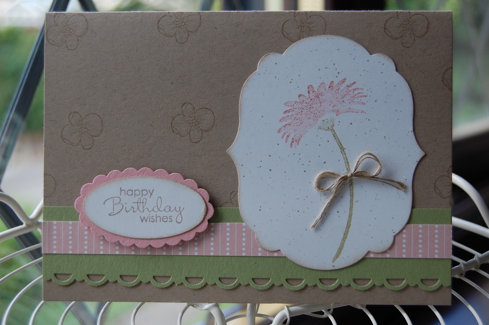 I used one of the new Framelits Label dies as a base for my flower image, these dies are just so brilliant, quick and easy to use and create great mats for our stamps as they cut larger sizes than our punches. I spritzed with a Crumb Cake Marker Pen then daubed around the edge in the same colour. The background uses another stamp from the same set.