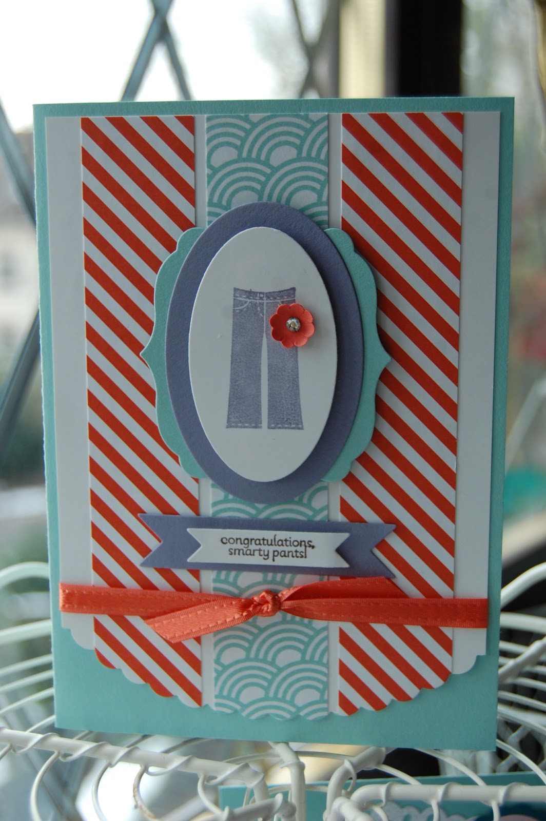 For this card I have used the “Patterned Occasions” Sale-a-bration stamps, I chose the “smarty pants” image which would be great for teen cards.
