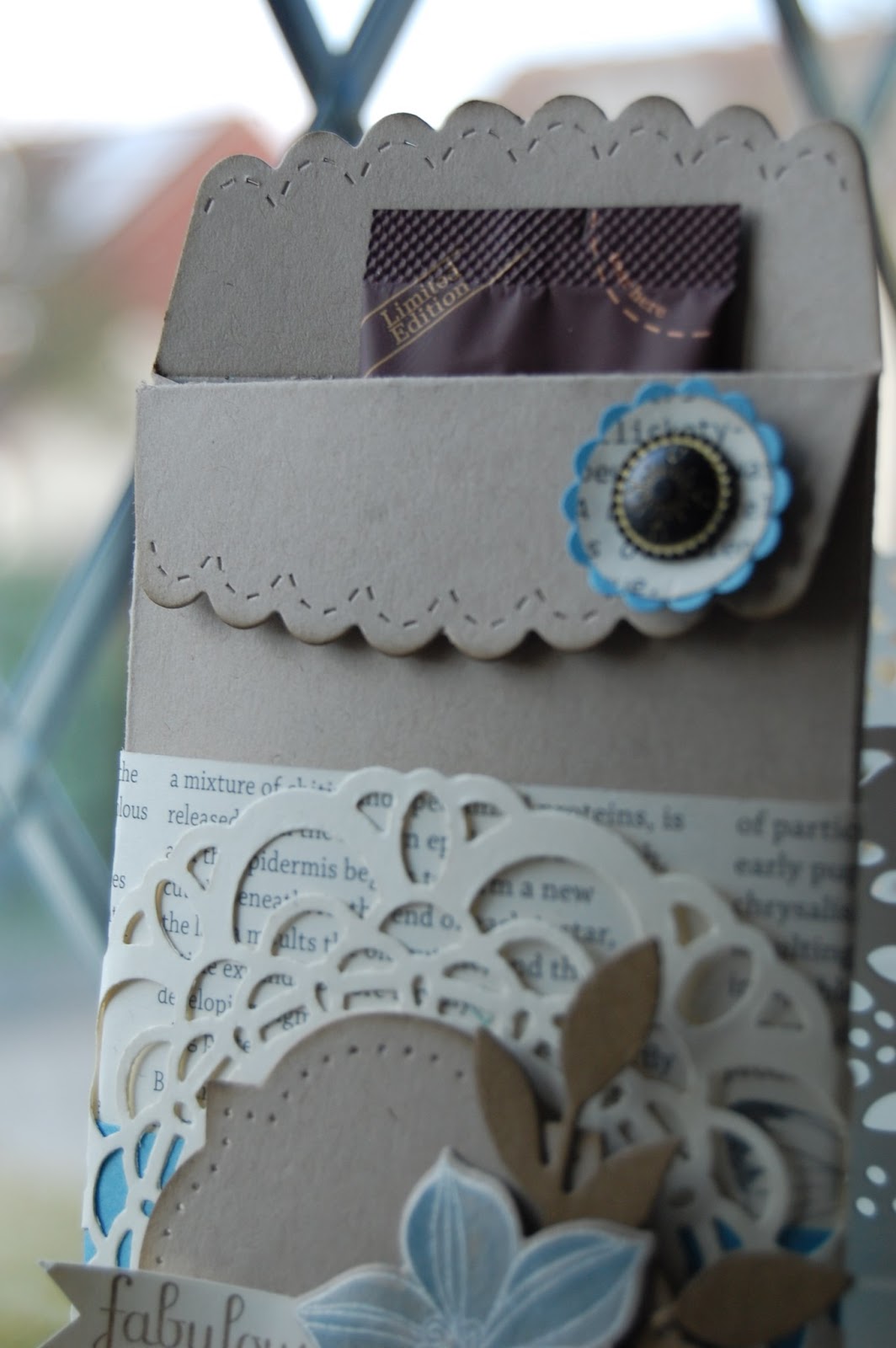 Now I put in a Hot Chocolate pouch for display but you could make a bookmark and put inside, use it as a sliding card or even a gift voucher wallet.