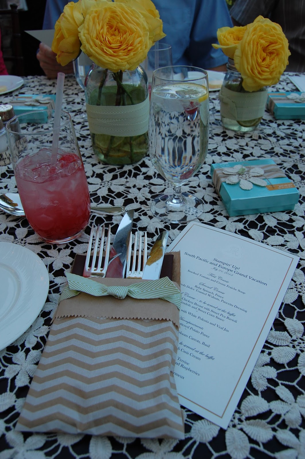 On our first night we had dinner at the hotel which was lovely, beautiful food, surroundings, company and table treats too!! We sat until the sun went down behind the mountains. I sat next to Nate, Shelli’s son-in-law who is a Director at Stampin’ Up! so our chat was very interesting!