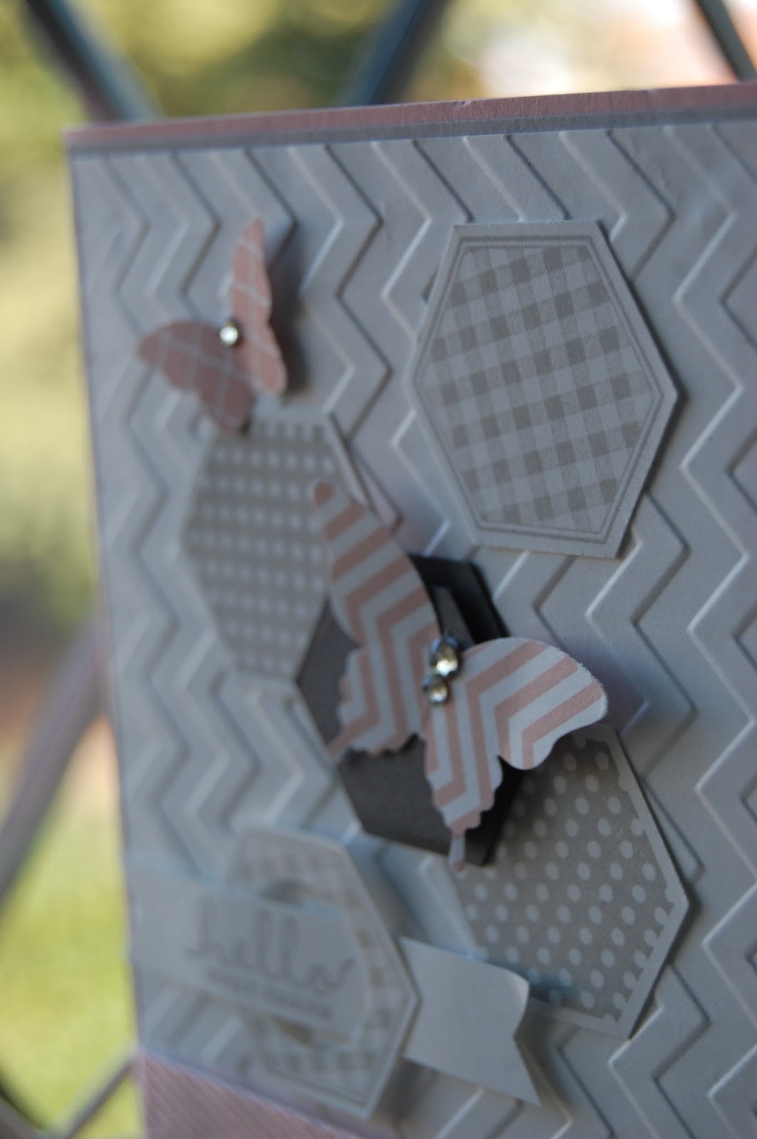 I love the new Chevron ribbon and teamed it with the matching Embossing Folder then added some butterflies using the Bitty and Elegant Butterfly punches.