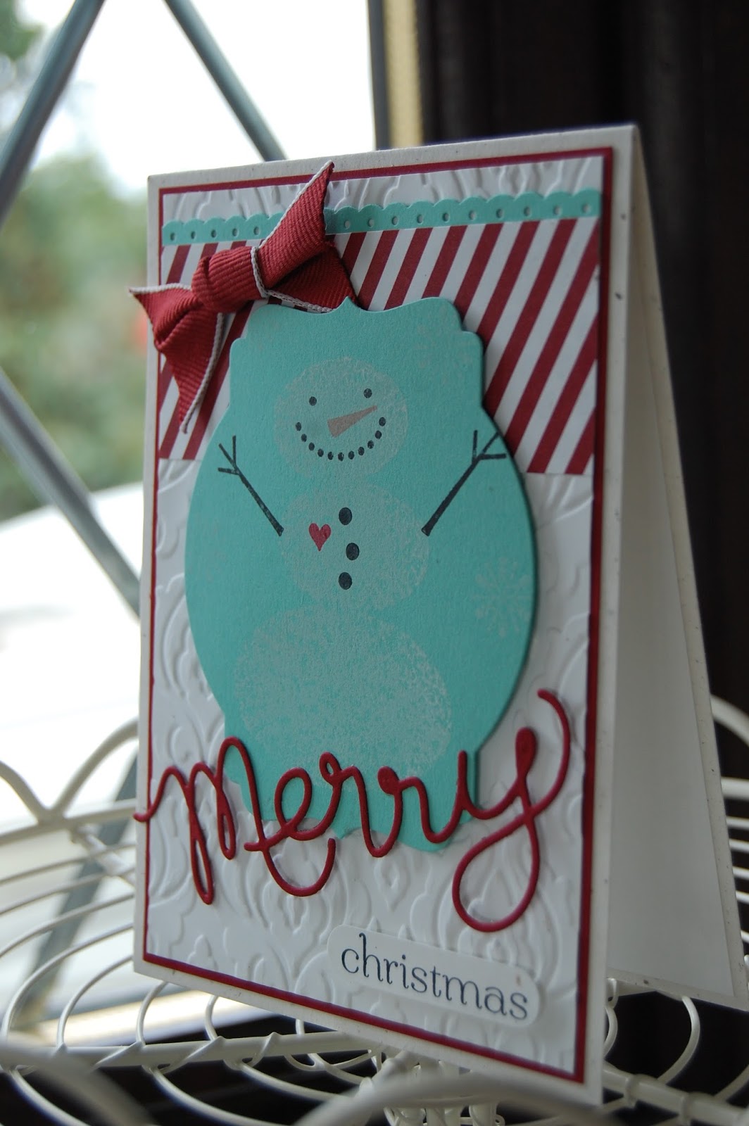 The “Merry” die cut is from the new “Expressions Thinlits” set which I love. I use wax paper to help the cardstock remove easily from the die.