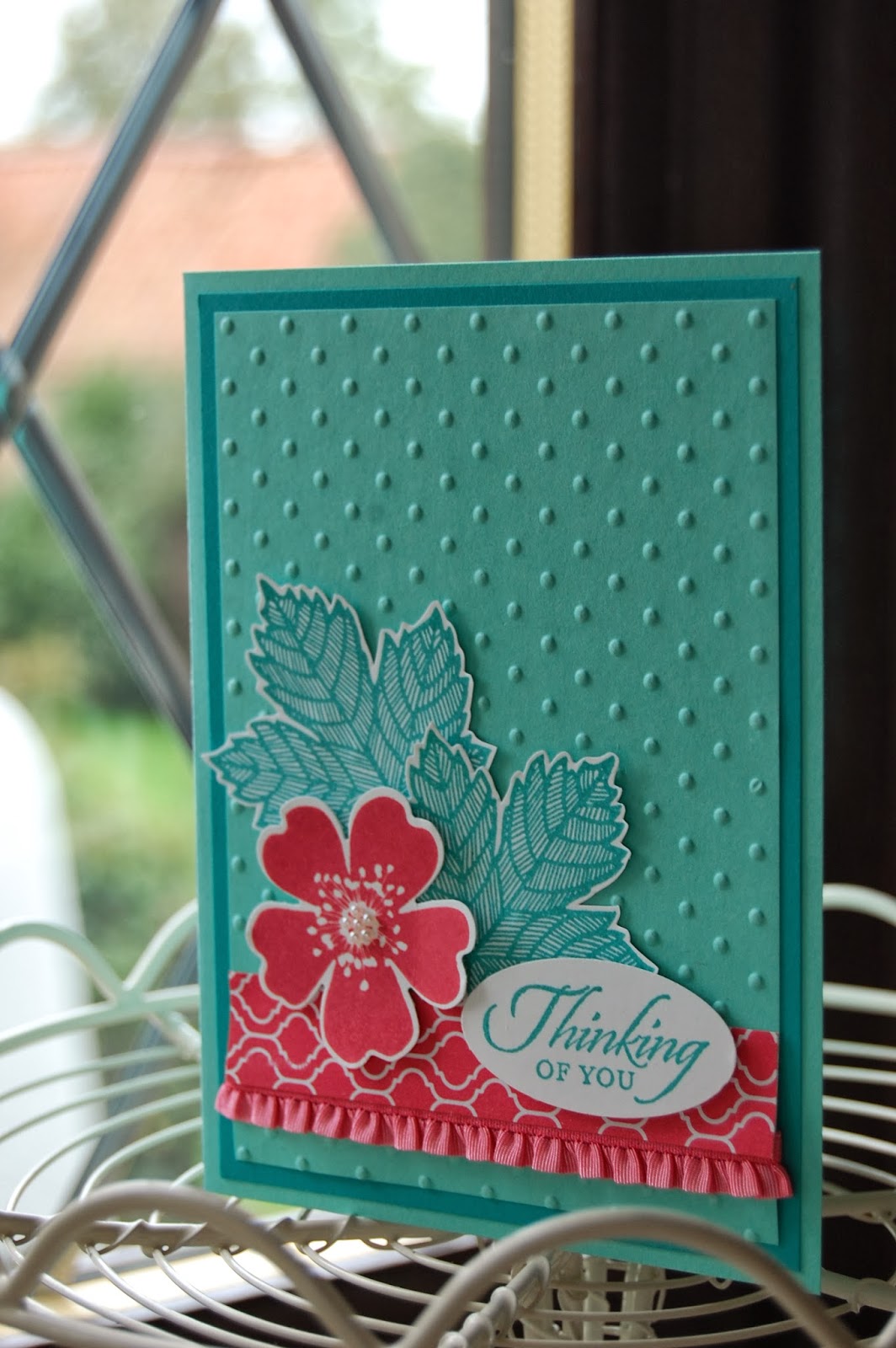 The flower is from a Hostess set called “Morning Meadow” which co-ordinates with the Pansy Punch but there is a set you can purchase which has very similar images called “Flower Shop”.