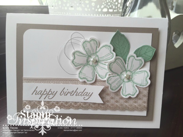 Another card from my “Birthday Blossoms” class I held recently, one of three that we made.