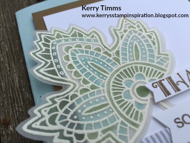 yes I know, more vellum usage!!  Next we dipped the stamped leaf into White Embossing Powder and set with the Heat Tool.