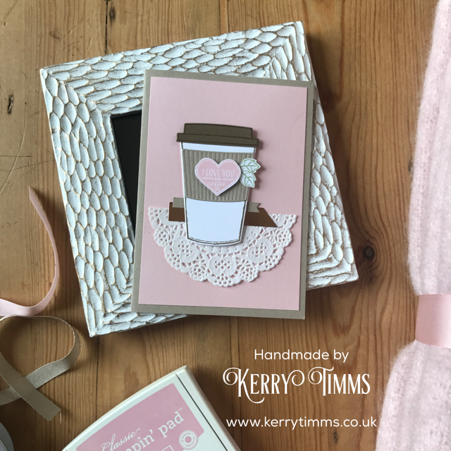 Here’s a recent card using a new set called “Merry Cafe”, totally love how cute this set is and that it co-ordinates with the “Coffee Cafe” set and dies in the Annual Catalogue. This set is very versatile and has multiple greetings included.